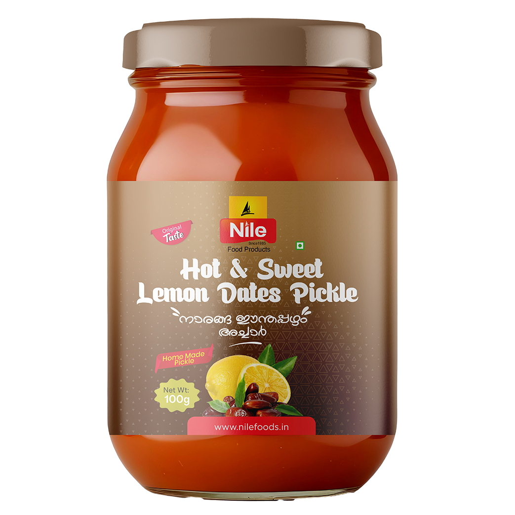Nile presents a perfect blend of sweet, tangy, and spicy flavours with our Hot & Sweet Lemon Dates Pickle, crafted from fresh lemons, succulent dates, and a special mix of spices to bring a unique Kerala-inspired taste to your meals.